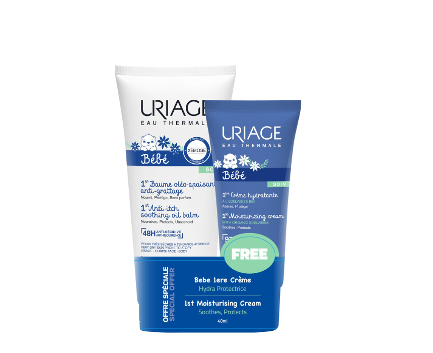 This baby care bundle soothes very dry and itchy skin with Uriage Bébé Anti-Itch Soothing Oil Balm while the included 1st Bébé Moisturizing Cream provides daily hydration and protection. Gentle and nourishing, it helps restore comfort and maintain soft, healthy skin. Apply the balm to clean, dry skin and follow with the cream for all-over moisture and lasting care.