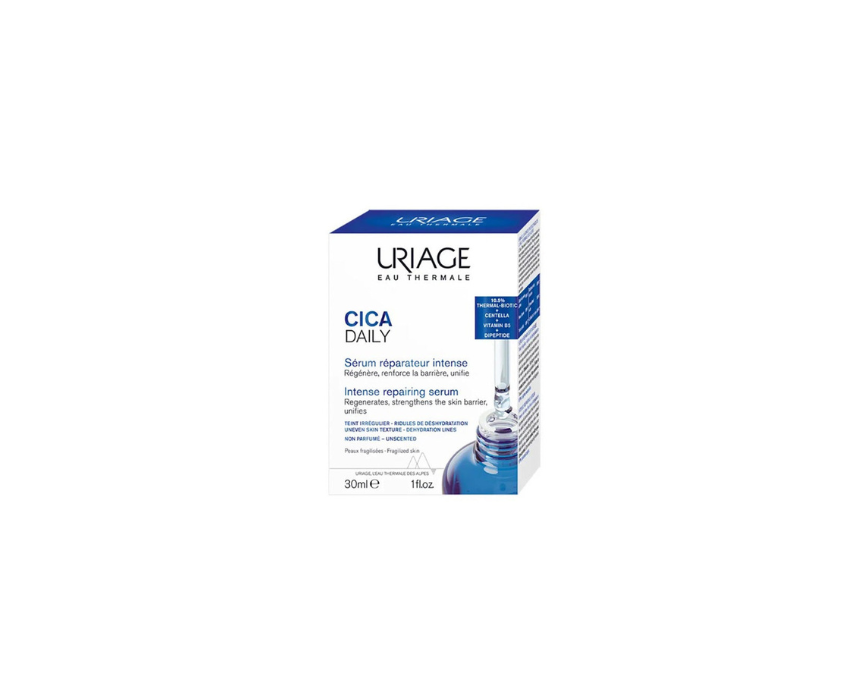 Uriage Cica Daily Serum repairs and strengthens the skin barrier while delivering intense hydration and calming irritated skin. Apply a few drops to clean skin morning and evening, gently massaging until absorbed. Perfect for daily use to maintain healthy, resilient, and soothed skin.