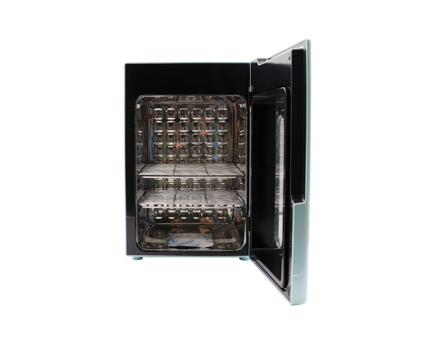 This UV Light Sterilizer Cabinet offers powerful sterilization with a 10L capacity, designed to eliminate bacteria and viruses efficiently. Equipped with a 115W UV lamp and automatic timing options (20, 40, and 60 minutes), this sterilizer ensures a thorough disinfection process for items placed inside. Perfect for healthcare facilities, salons, and home use, the compact design fits easily in any space. The cabinet’s dimensions are 22cm x 27.2cm x 32.8cm and operates on 220V, 50Hz