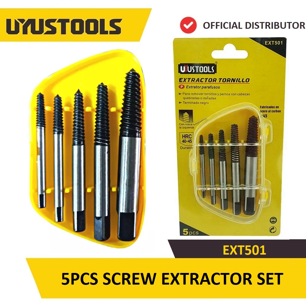 The UYUSTOOLS EXT501 is a 5-piece screw extractor set designed to remove damaged, rusted, or broken screws and bolts. This “pig-tail” style set is widely used for extracting fasteners that have lost their heads or have stripped drives.