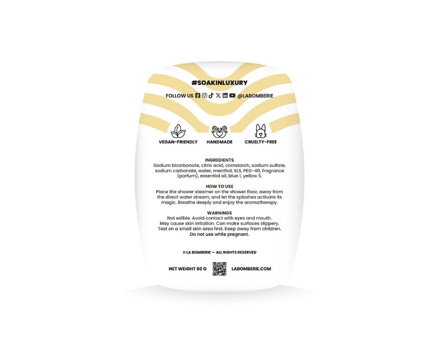 La Bomberie Vanilla Citrus Steam 60g offers a soothing sunrise shower experience with its refreshing vanilla citrus aroma. Designed to revitalize the senses, this shower steamer dissolves easily to create an uplifting and calming atmosphere. Ideal for use during morning routines to awaken and energize, simply place it on the shower floor away from direct water flow and enjoy a spa-like soak that refreshes both body and mind.