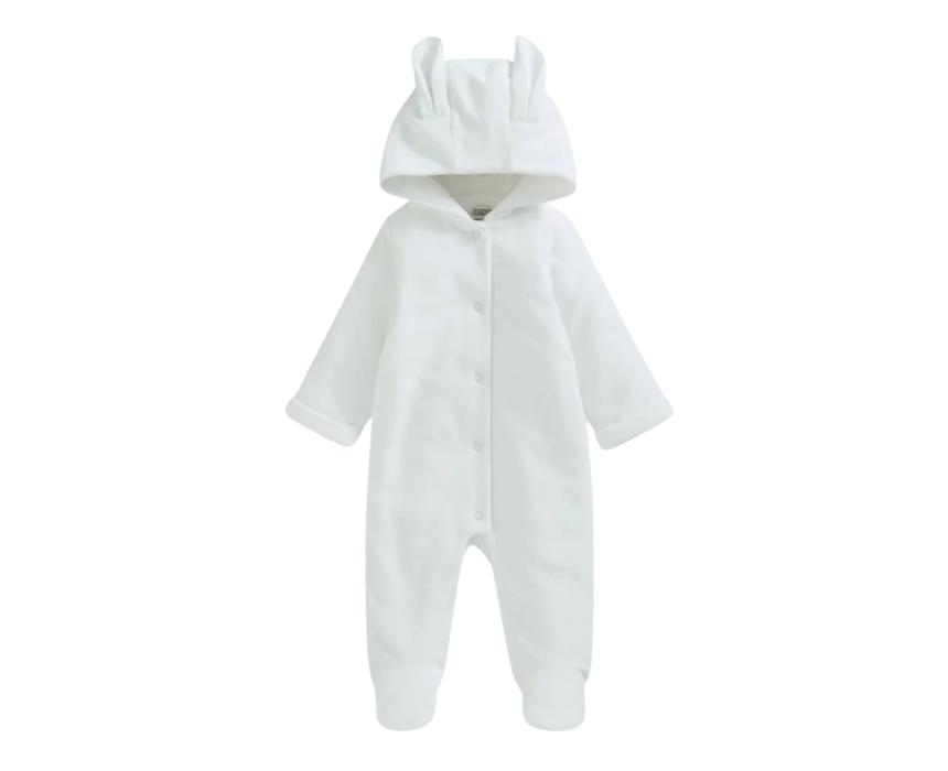 This soft velour pramsuit keeps your little one warm and cosy during outings in cooler weather. Crafted from plush velour fabric, it features a full-length zip for easy dressing and layered comfort. Ideal for walks, travel, or layering over everyday outfits, this pramsuit combines practicality with stylish comfort.