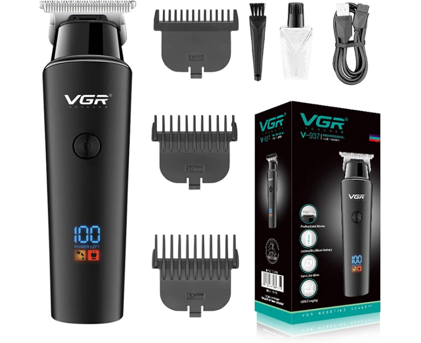 VGR V 937 is a professional cordless hair and beard trimmer built for precise cutting and smooth grooming, featuring sharp stainless steel blades, adjustable cutting lengths, USB rechargeable battery, and an ergonomic grip for easy control. Ideal for shaping beards, defining edges, and styling clean fades, it delivers reliable performance for home or salon use.