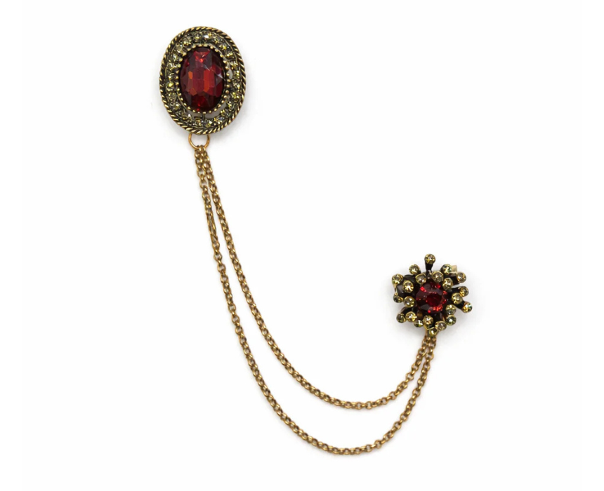 This vintage style ruby chatelaine collar brooch features a sophisticated design with sparkling accents and a secure pin backing for comfortable wear. Perfect for styling on collars, blouses, jackets, or scarves, it adds a refined and elegant touch to both casual and formal outfits. Lightweight and versatile, it is ideal for personal accessorizing or as a thoughtful gift.