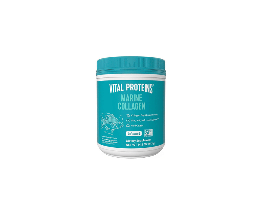 Vital Proteins Marine Collagen Peptides Powder is an unflavored supplement that supports healthy skin, hair, nails, and joints. Easily mix into water, smoothies, or recipes for daily collagen and protein intake.