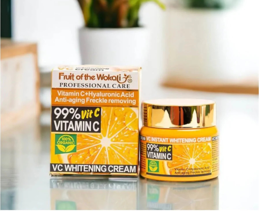 Fruit of the Wokali 99% Vitamin C VC Whitening Cream is a 50g multi-benefit skincare product formulated to brighten, hydrate, and improve skin texture. Enriched with Vitamin C, Hyaluronic Acid, Vitamin B3, and Vitamin E, it helps reduce age spots, freckles, and melanin pigmentation, while providing antioxidant protection, enhancing skin elasticity, and promoting a radiant, even-toned complexion. This anti-aging cream nourishes, moisturizes, and revitalizes dull skin for a healthy, glowing appearance.
