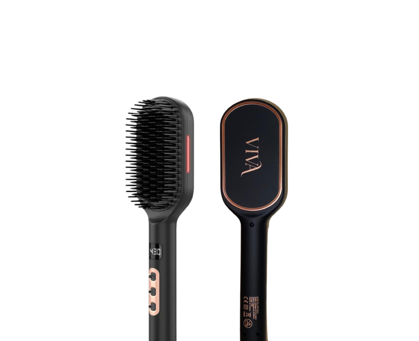 Get silky, frizz-free hair effortlessly with the VIVA Ionic Hair Straightener Brush, designed for all hair types. Featuring advanced ceramic plates, PTC heating for fast, even styling, and negative ion technology to lock in moisture, it delivers smooth, shiny results in seconds. The anti-scald comb teeth ensure safe use, while adjustable heat settings from 125 to 220°C cater to different hair textures. Lightweight, travel-friendly with global voltage, and auto shut-off for safety, it’s your perfect daily styling tool.