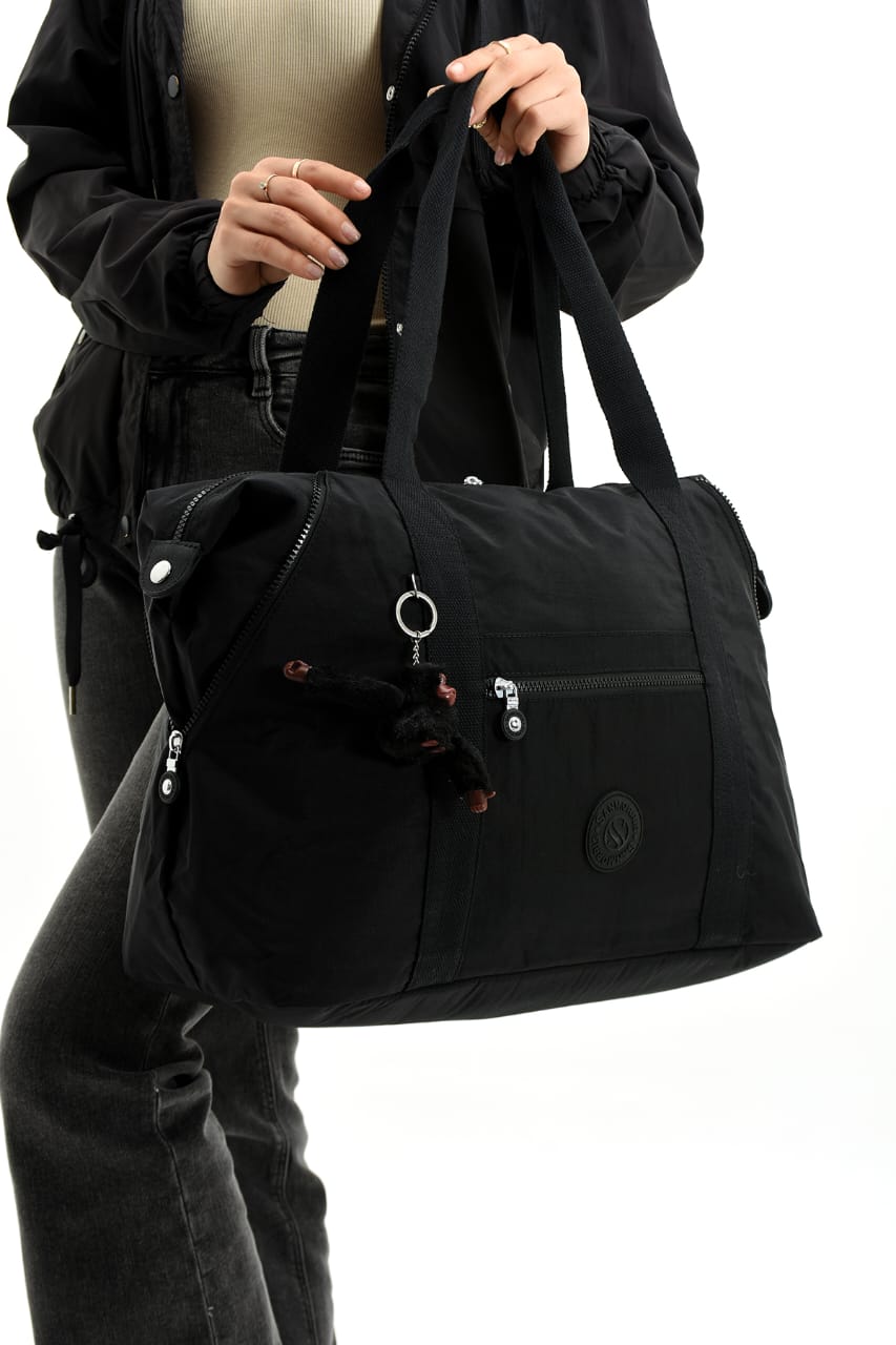 The Voyara Handbag is a large, versatile bag perfect for travel, sports, pool days, or as a mom/baby bag. Measuring 57×35×18 cm, it offers ample space for all your essentials. Made in classic black, Voyara combines practicality with a sleek, stylish design for everyday or on-the-go use.