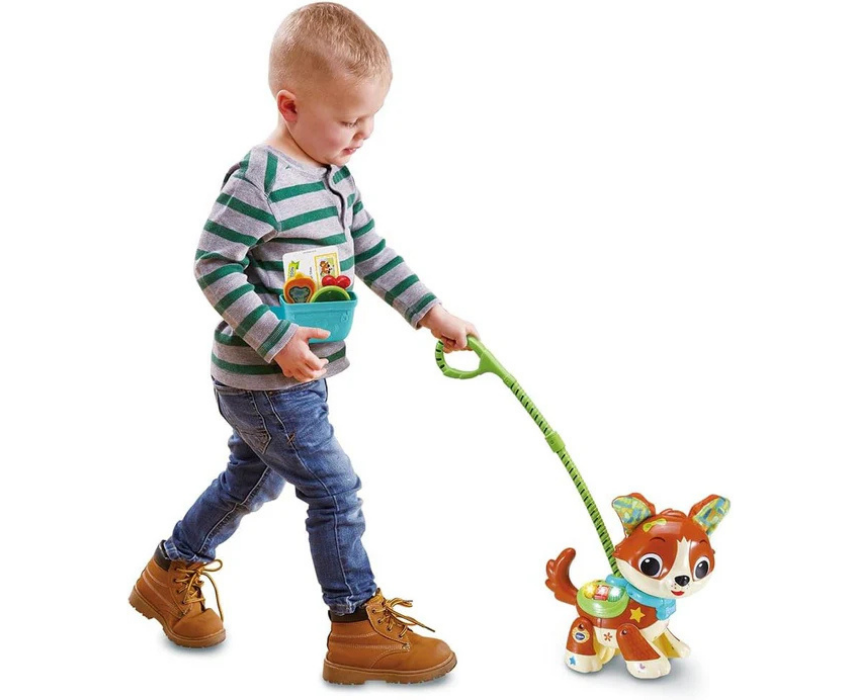 The VTech Titou My Magic Walking Puppy is an interactive learning toy for children 18 months to 4 years, designed to teach colors, numbers, and pet care through play. Featuring a rolling puppy with detachable leash, two game modes, nine missions, fun songs, melodies, and phrases, it encourages motor skills, imaginative play, problem solving, and responsibility. Comes with accessories and a sticker sheet for personalization, offering engaging, educational fun for young children.