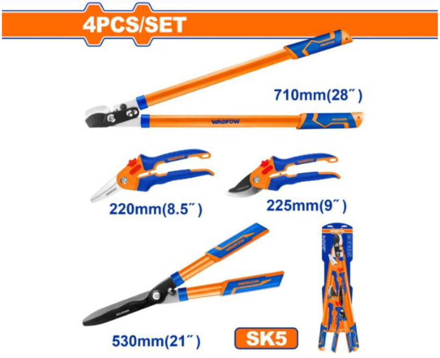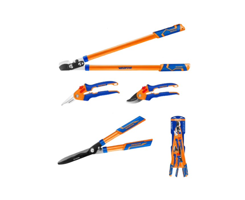 The Wadfow Pruners Set 4 pcs is a versatile gardening tool set designed for precise cutting and trimming, perfect for maintaining flowers, shrubs, and small branches, crafted for durability and comfort with ergonomic handles, ideal for both home gardeners and professionals, lightweight and easy to handle for extended use, comes in a convenient 4-piece set that covers all pruning needs, making garden maintenance efficient and enjoyable.