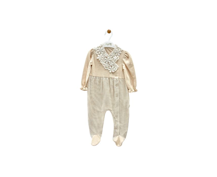 The Waffle Touch Romper in beige is crafted from lightweight cotton, designed to keep babies comfortable. Its subtle waffle texture adds a cozy feel while allowing easy movement. Ideal for layering with a jacket, this romper is perfect for casual and playtime looks.