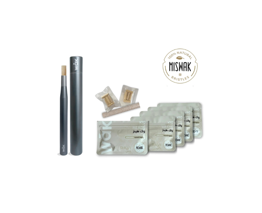The wāk Smile More Bundle offers a complete natural oral care experience, featuring one premium wāk Stick and five pouches of Ravi wāk Heads from Pakistan, each with a biodegradable sampler stick. Designed for effortless oral wellness and mindful fidgeting, the bundle provides chemical-free, antibacterial care while keeping your smile fresh and confident. Twist a head onto the stick or sampler, brush or bite for natural freshness, and replace after use for a sustainable daily ritual.