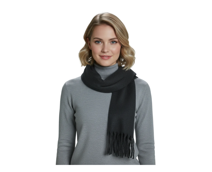 This warm dark grey basic scarf is a versatile accessory designed for comfort and style, perfect for layering in chilly weather. Its neutral color complements any outfit, from casual jackets to tailored coats, and can be draped, wrapped, or knotted for effortless elegance. Made from soft, durable material, it adds both warmth and a subtle touch of sophistication to everyday looks.