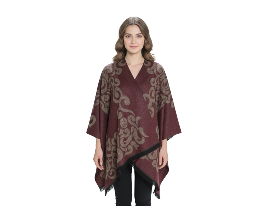 Warm Stylish Designed Knitwear Pancho features a soft, cozy knit fabric with a loose, flowing fit and stylish design details for a chic, comfortable look. Perfect for layering over casual or smart-casual outfits, it provides warmth without compromising style. Pair it with jeans, leggings, or skirts and minimal accessories for an effortless, fashionable ensemble.