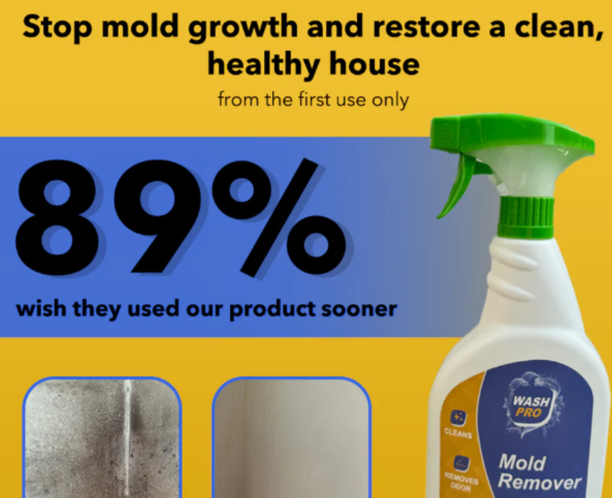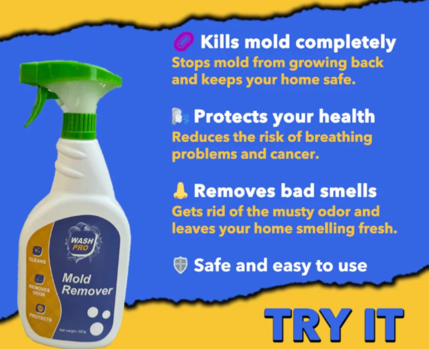 WashPro Mold Remover Spray is a powerful, eco-friendly cleaner that penetrates deep to remove mold and prevent regrowth, keeping your home safe and healthy. Suitable for ceramic, glass, silicone, bathrooms, windows, doors, pools, solar panels, and ovens, it also eliminates odors caused by mold and bacteria. Its no-scrub formula ensures quick, effective cleaning for a fresher, mold-free environment.