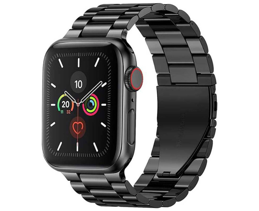 The Link Stainless Steel Watch Band GNLinkWBBK in black fits 42, 44, 45, and 49mm watches, offering a durable and stylish upgrade for smartwatches. Its sleek black metal design adds a polished, professional look, making it ideal for office wear, formal occasions, or everyday use while providing a secure and comfortable fit.