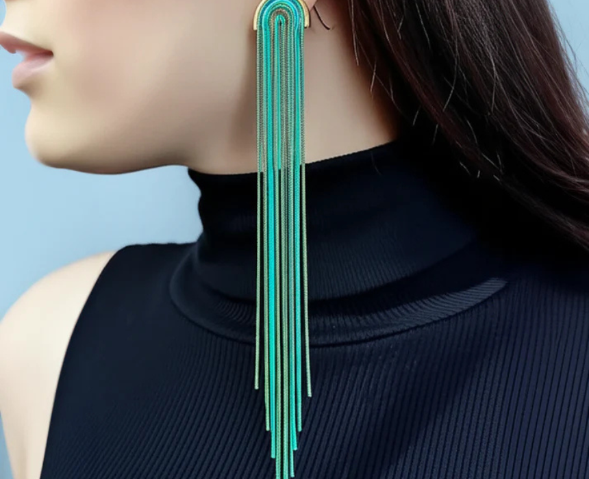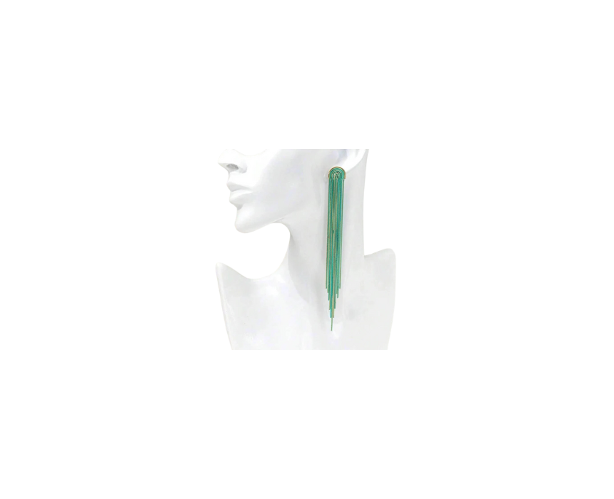 The Green Waterfall Earrings are crafted from copper and designed with cascading elements that create an elegant, fluid look. Lightweight and comfortable, they feature a rich green tone that adds movement and color to both casual and dressy outfits. Style them with simple tops or evening wear to let their waterfall design stand out.