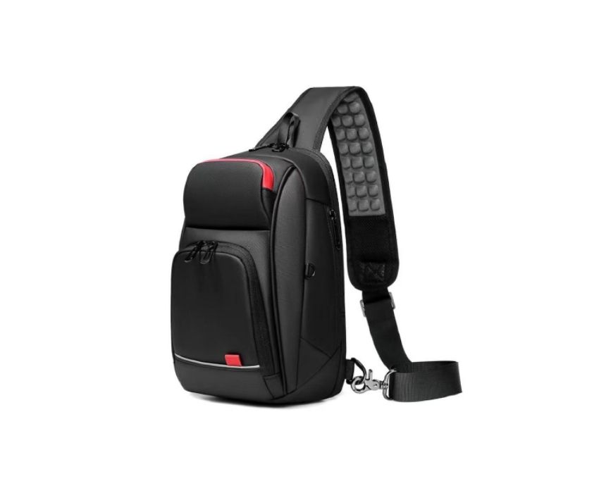 The Waterproof Cross Bag with Red Strips is a compact 20x14x30 cm chest bag weighing just 0.6 kg, designed for daily use and travel. It features a built-in USB port for easy charging, water-resistant material to protect belongings, and anti-theft details for added security. Its sleek, sporty look pairs well with casual or travel outfits, worn comfortably across the chest or back.