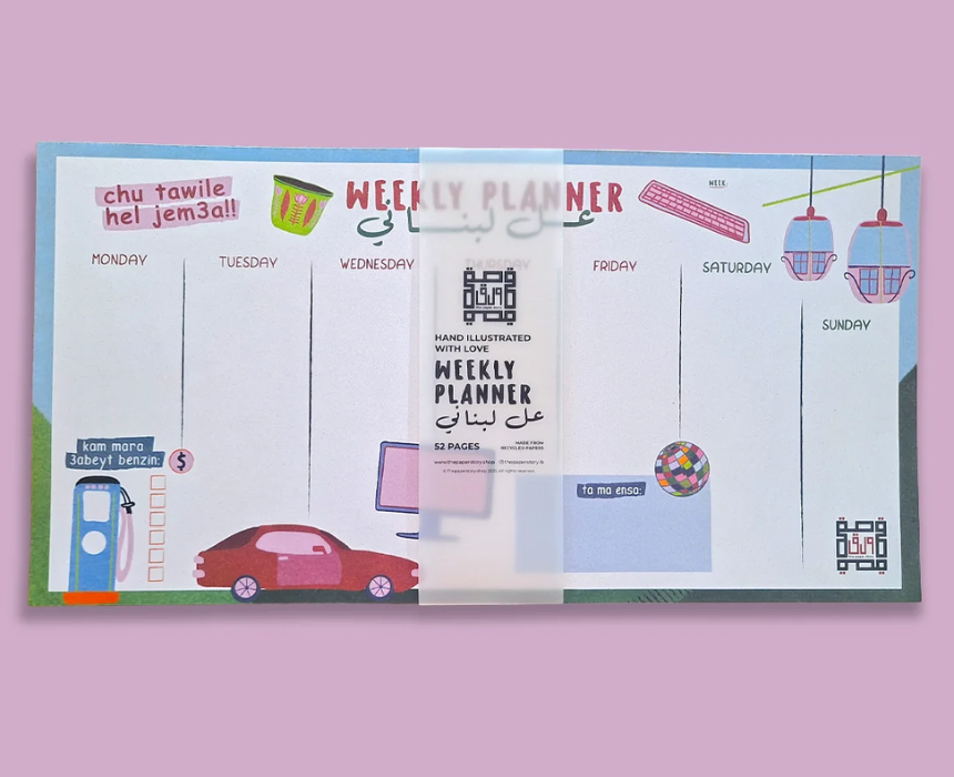 This tear-off weekly planner brings Lebanese humor to everyday scheduling, helping users stay organized with a lighthearted touch from Monday through Saturday. Ideal for desks, home offices, or gifting, it adds a fun 3al Lebnene flair to any workspace while keeping weekly plans clear and easy to follow.