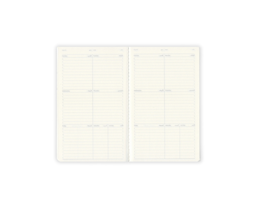 This 13 x 21 cm planner is designed for 52 weeks of organized planning, made with eco-friendly paper and a sturdy 250-gram cover. Inside, the 80-gram recycled newspaper pages provide a sustainable and practical writing surface, while the bilingual format makes it versatile for different users. Perfect for daily schedules, notes, and goals, it offers an eco-conscious solution for home, office, or school.