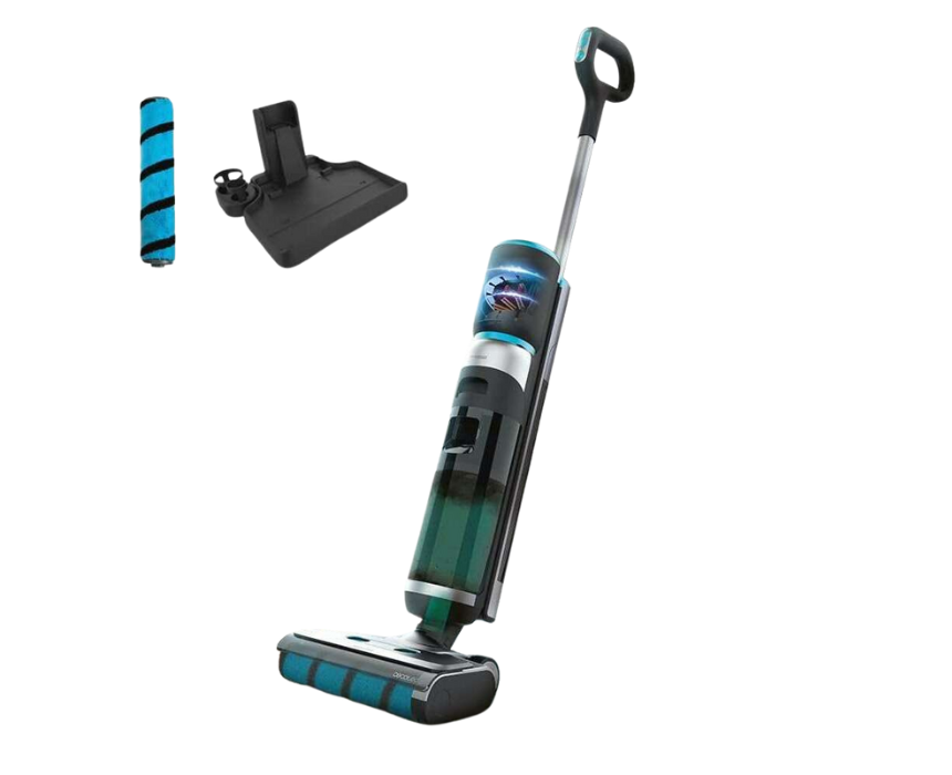 The Cecotec Elektromopp FreeGo Wash & Vacuum is a powerful 200 W cordless floor cleaner that simultaneously scrubs and vacuums for effortless home cleaning. With over 35 minutes of runtime, separate clean and dirty water tanks, a digital brushless motor, water spray system, LCD display, auto mode, and self-cleaning and drying functions, it ensures faster floor drying and a thorough, convenient clean every time.