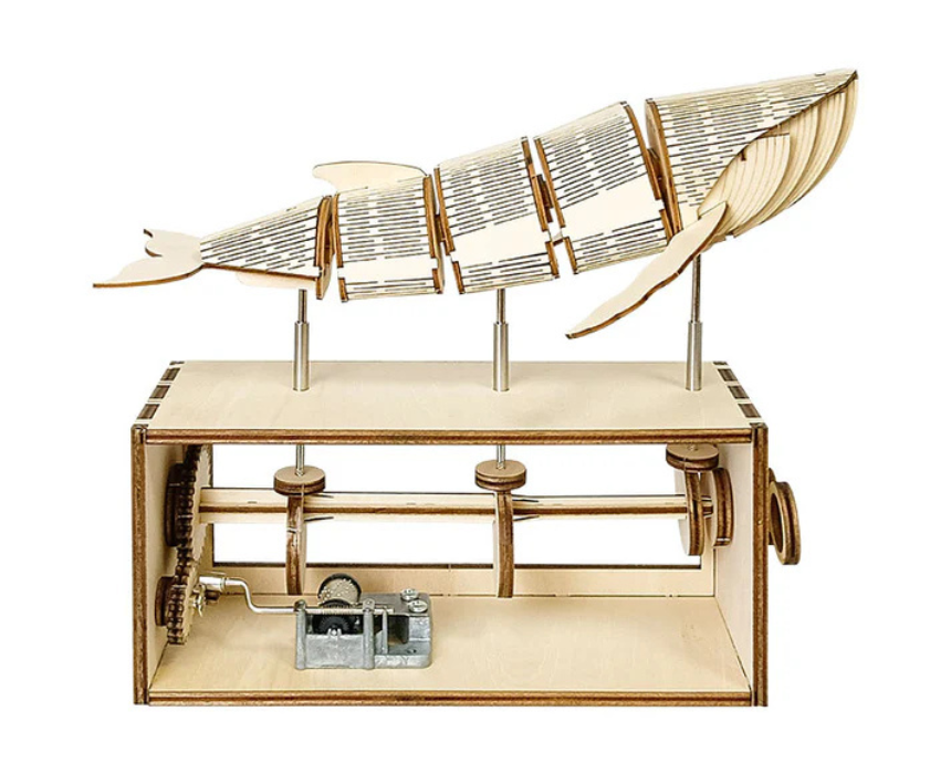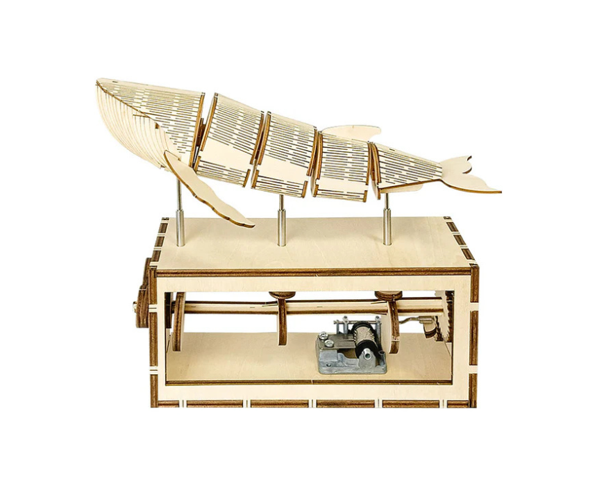 Whale’s Call Music Box 3D Mechanical Wooden Puzzle is a precision-cut wooden model that builds into a rotating music box with smooth mechanical motion and a serene whale-inspired design. Once assembled, it can be styled as a soothing desk or shelf accent, adding warm wood tones and gentle musical movement to home or office decor.