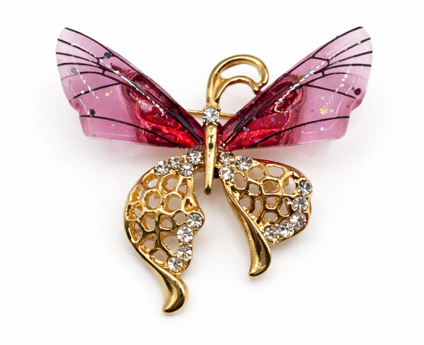 This whimsical fairy wing butterfly brooch features an intricate design with delicate detailing and a secure pin backing for comfortable wear. Ideal for styling on jackets, blouses, scarves, or handbags, it adds a playful and enchanting accent to both casual and formal outfits. Lightweight and versatile, it is perfect for personal accessorizing or as a charming gift.