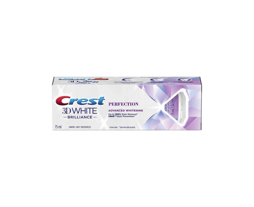 Crest 3D White Perfection Toothpaste helps remove surface stains while whitening teeth and protecting against cavities for a brighter smile. It provides a refreshing minty flavor and can be used daily as part of a complete oral care routine to maintain clean, healthy looking teeth and long lasting freshness.