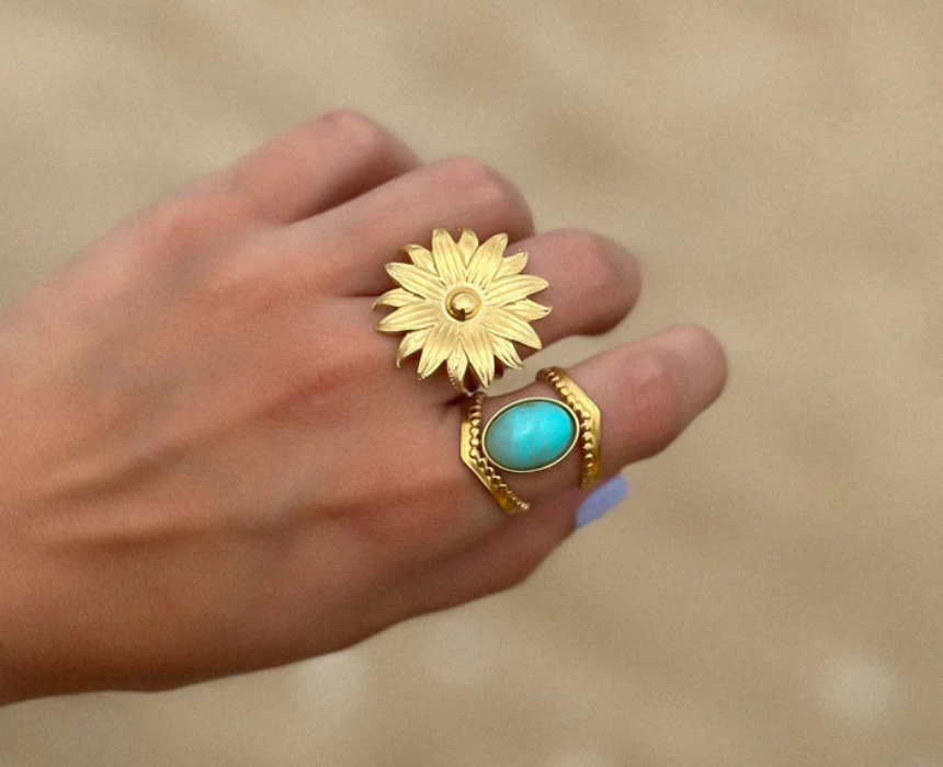 Wildflower Shimmer Adjustable Ring features a delicate floral inspired design with a subtle shimmer that adds a refined and feminine touch to any look. Designed with an adjustable fit for comfort, it can be easily styled for daily wear or special occasions. Wear it solo for an elegant statement or stack with other rings to create a layered and personalized style.