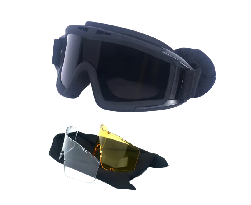 The Anti-Fog Windproof Protective Goggles feature 3 interchangeable lenses for clear vision in any lighting condition. Designed with anti-fog coating and a sealed fit, they protect against dust, sand, and wind for maximum comfort and performance. Lightweight with an adjustable strap, they are ideal for outdoor activities like biking, hiking, and motorcycling.
