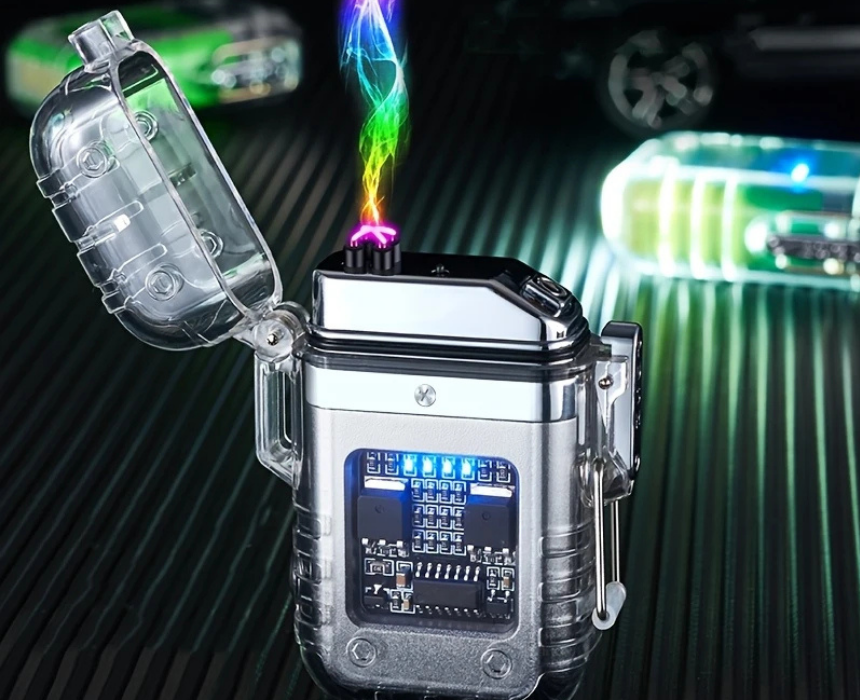 This windproof dual arc USB rechargeable lighter uses advanced plasma arc technology for reliable, flame free ignition in any conditions. Designed with a durable transparent body, safety lid, and LED power indicator, it ensures both style and functionality. Compact and eco friendly, it is perfect for outdoor activities, travel, and everyday use.