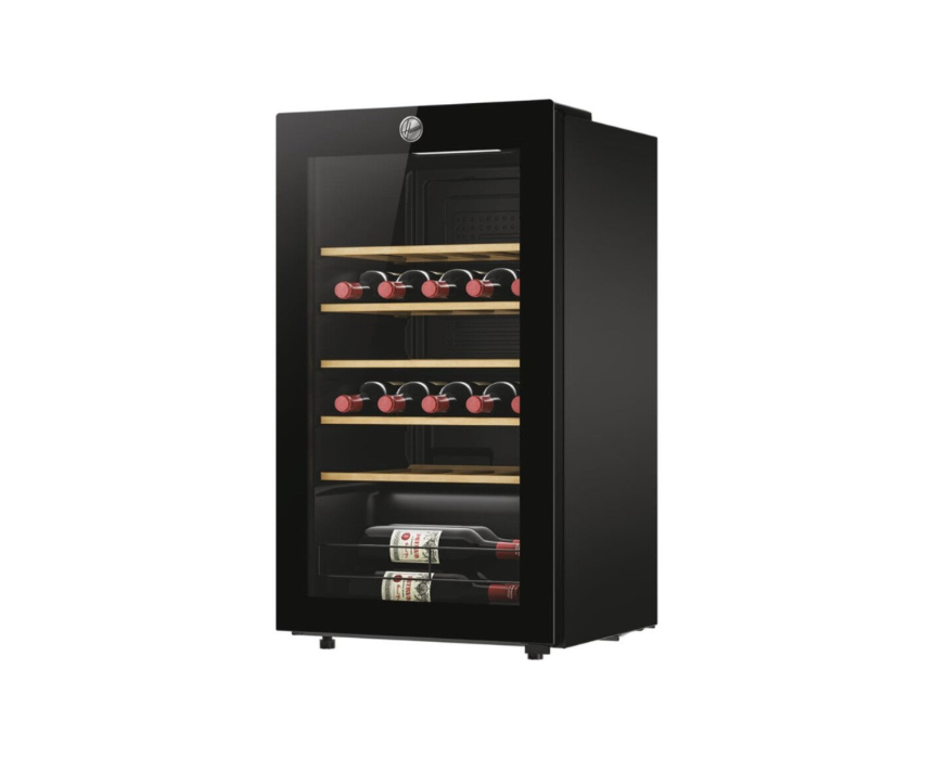 The Hoover HOWC034 freestanding wine cellar in black stores up to 34 bottles with precise digital temperature and humidity control, ensuring perfect preservation of your wine’s flavour and aroma. Equipped with anti-UV glass, wooden shelves, minimal vibrations, and remote control via the hOn app, it provides smart, easy, and elegant wine storage for any home. Its reversible door and quiet operation make it both practical and stylish for modern kitchens or wine rooms.