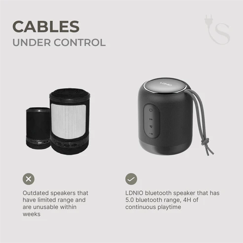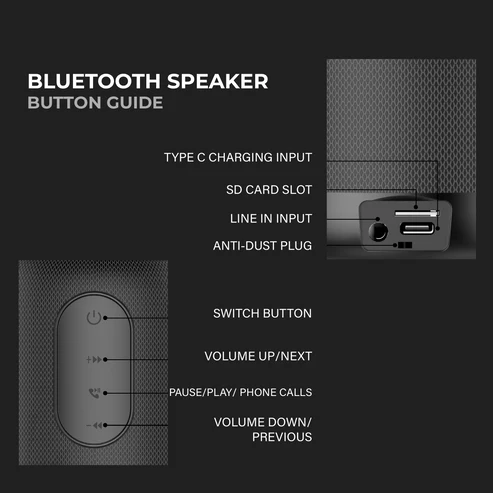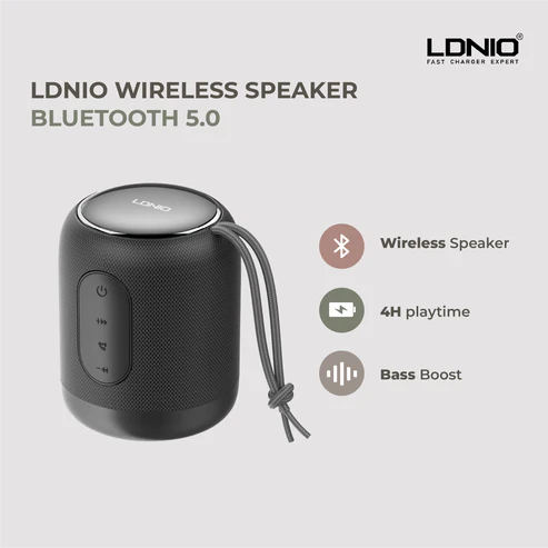 This compact 112×90 mm wireless speaker features Bluetooth 5.0 technology with a 10m transmission range for stable connectivity. Equipped with a high-capacity battery, it offers 4 hours of music playback and includes a powerful bass boost for rich stereo sound. The versatile design supports multiple inputs, including Bluetooth, AUX, and SD card insertion. To use, simply pair with your device to enjoy crisp audio in any room. Please check dimensions prior to ordering to ensure a proper fit as this product includes the speaker only and does not include an extension cord.
