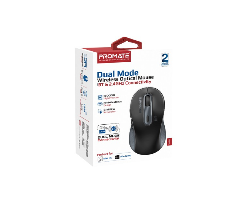 The Wireless Optical Mouse Dual Mode Black Ken offers flexible connectivity with dual mode operation for both Bluetooth and USB receiver use. Its sleek black design fits comfortably in hand, complementing home, office, or gaming setups while ensuring smooth and precise tracking. Ideal for users seeking convenience, portability, and reliable performance without the clutter of cables.