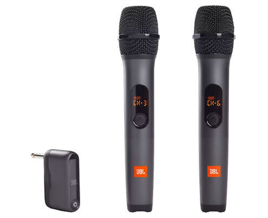 The Wireless Two Microphone System with Dual Channel Receiver Black JBLWIRELESSMICAS2 provides professional-quality audio for presentations, events, or performances. It includes two wireless microphones and a dual channel receiver for simultaneous use, offering clear sound and reliable connectivity. The sleek black design ensures a professional appearance while being easy to set up and transport.