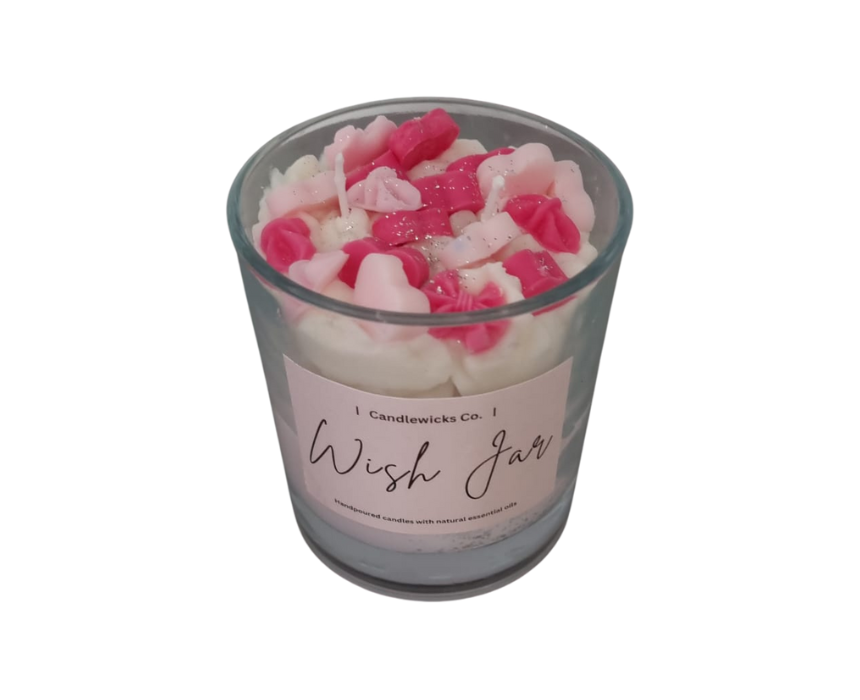 The Wish Jar Candle is a beautifully crafted jar candle combining whipped and plain wax, infused with the delightful scents of blackberry and gardenia. Its elegant design and soothing aroma make it perfect for creating a cozy, relaxing atmosphere or gifting to someone special. Style it on a bedside table, shelf, or coffee table to add warmth and charm to any space.