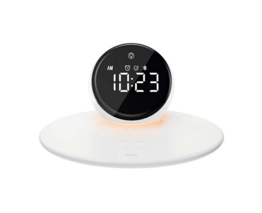 <p>The Wireless Charging Clock Bluetooth Speaker combines a dual alarm clock, 3 speed night light, and sleep white noise for a complete bedside solution. Featuring Bluetooth 5.3, 5 W speaker power, 15 W wireless charging, and a 1000 mAh battery, it is compact, portable, and easy to use with separable magnetic suction for flexibility. Perfect for music, relaxation, and charging devices simultaneously.</p>
