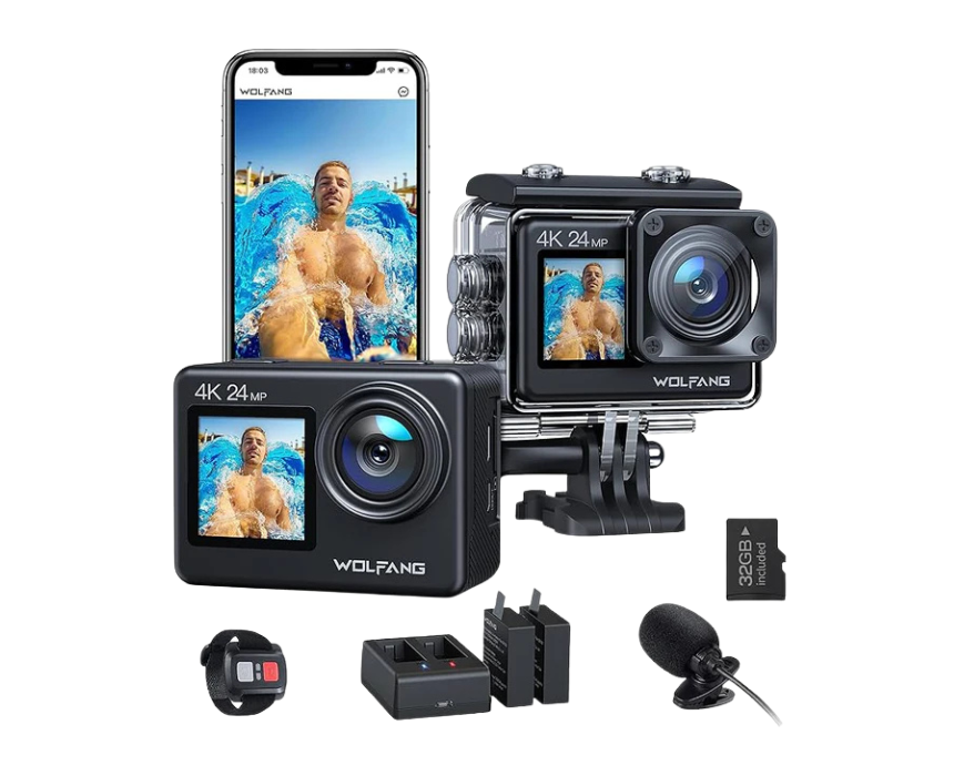 The Wolfang Action Camera is designed for capturing high‑energy moments during sports, travel, or outdoor adventures. With rugged construction and wide‑angle video capture, it lets you record smooth footage of biking, surfing, hiking, and more. Compact and portable, it pairs well with mounts, accessories, and mobile devices for easy sharing and playback.