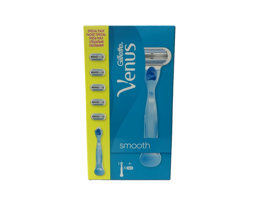 A women’s razor designed with a comfortable ergonomic handle and three smooth blades to provide a close and gentle shaving experience. It helps glide easily over the skin for a soft, silky finish while minimizing irritation during use. Includes five refill cartridges for long-term convenience, making it suitable for regular grooming as part of a personal care routine.