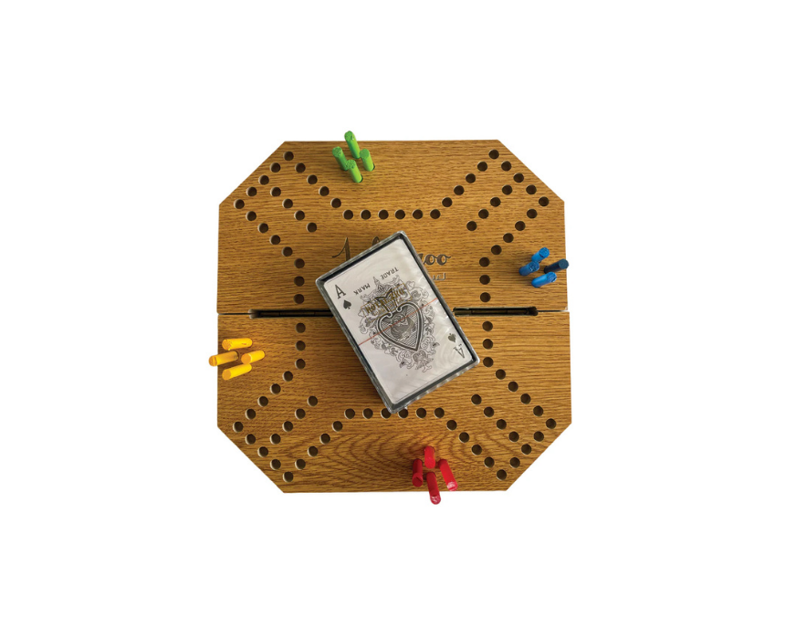 Mini Jackaroo is a wooden board game of strategy and teamwork where players use cards and marbles to block opponents and guide their own safely home. With 16 glass marbles, a deck of cards, and endless teasing tricks, it’s a fun family and party game for kids, teens, and adults alike. Designed for kids aged 12+.