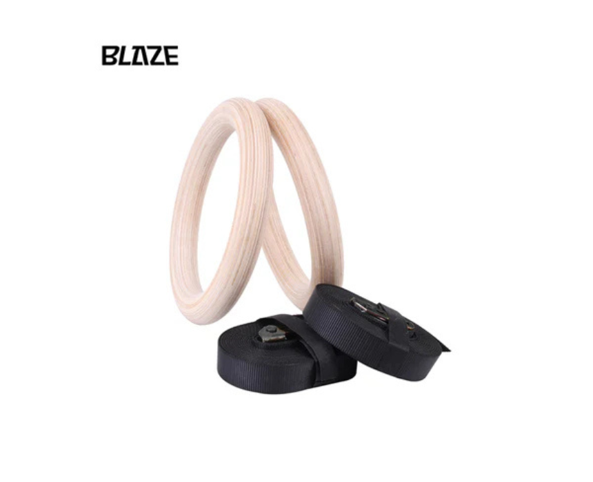 The Blaze Wooden Gymnastic Rings are crafted from high quality wood with a 32mm diameter to deliver a natural non slip grip for strength, calisthenics, and CrossFit training. Featuring heavy duty adjustable straps with a 5 meter length, they are easy to set up indoors or outdoors for pull ups, dips, muscle ups, and static holds. Hang them securely from a bar, beam, or tree to train upper body and core strength anywhere.