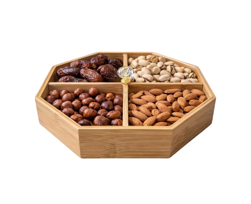 The Wooden Tray is ideal for serving dried fruits, raw nuts, or small snacks in style. Crafted from durable wood with a natural finish, it adds a rustic and elegant touch to any table setting. Perfect for entertaining guests, everyday use, or gifting, it combines functionality with timeless charm.