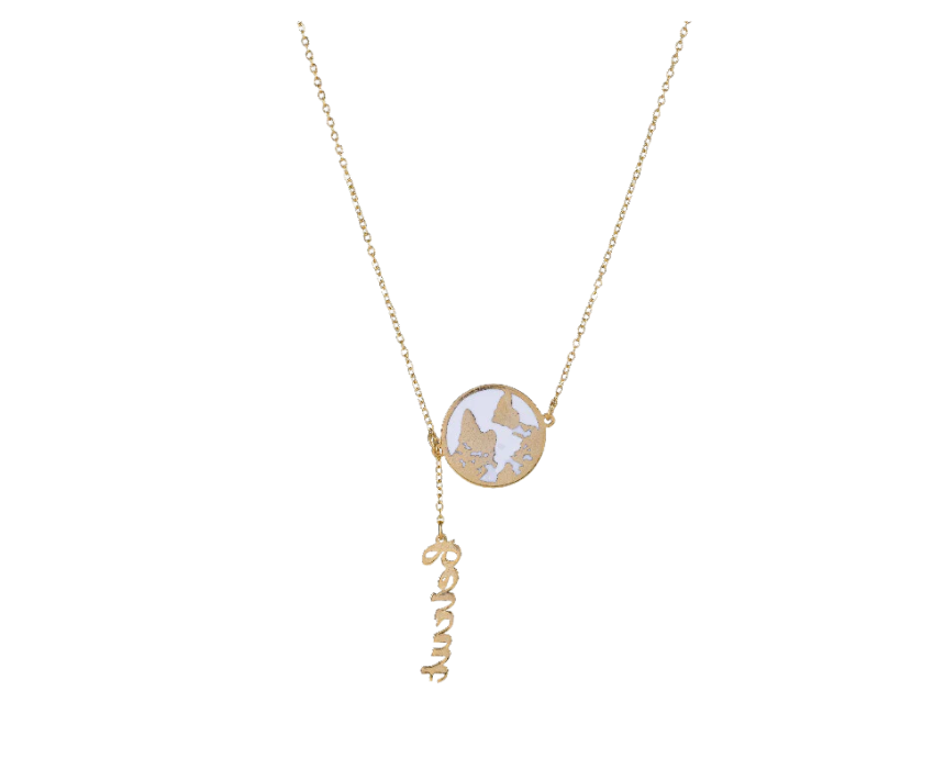 This world enamel necklace with name features a detailed pendant accented with vibrant enamel, offering a personalized and stylish addition to any jewelry collection. Designed for everyday wear, it can be styled alone as a meaningful statement or layered with other necklaces for a trendy look. Its versatile design complements both casual and elegant outfits effortlessly