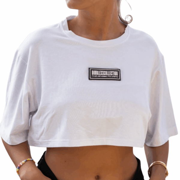 The XX Premium Crop Top by doublexxcollection is made from high end 2 by 2 premium fabric, offering a stretchy, body-hugging fit that delivers both comfort and a sleek silhouette. Designed in a clean white color, this tight crop top features minimalist mid-chest doublexxcollection embroidery for a refined finish. It pairs effortlessly with leggings, jeans, or sweatpants, making it ideal for workouts or elevated casual styling.