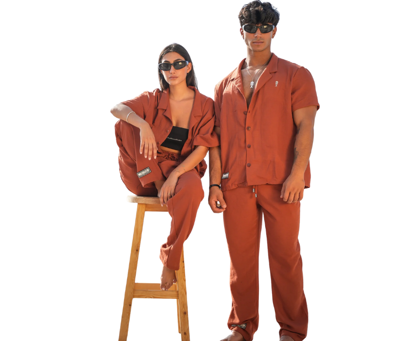 The XX Premium Set by doublexxcollection is a unisex ensemble combining comfort and style with effortless elegance. Crafted from a breathable blend of cotton, linen, and rayon, the set includes an oversized button-up shirt and wide-legged pants in captivating brick orange, featuring embroidered doublexxcollection logos and subtle trademarks. Perfect for casual outings, work-from-home comfort, or stylish streetwear looks, this set delivers a refined and versatile wardrobe essential.