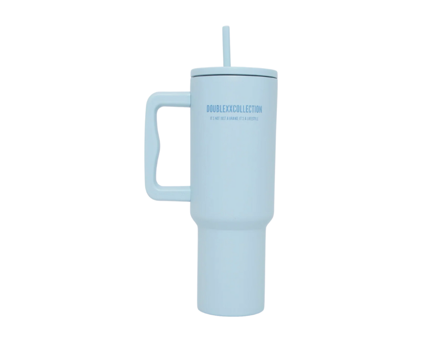 Stay refreshed on the go with the XX Tumblr in Baby Blue. This 40 oz / 1.2 L double-walled stainless steel tumbler features a sturdy handle and leak-proof lid, keeping drinks hot for up to 12 hours or cold for up to 24 hours. Durable, stylish, and perfect for coffee, tea, or hydration on the move.