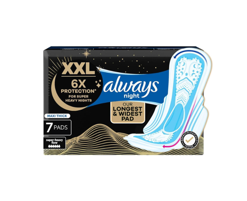 Always XXL Maxi Thick pads are designed for super heavy flow, offering maximum absorbency and superior leakage protection. Their extra-long, thick design ensures comfort and reliability, keeping you dry and confident throughout the day. Ideal for those needing dependable protection on the heaviest days.