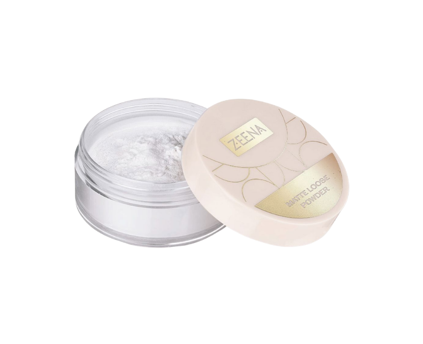 Zeena matte loose powder is designed to set makeup while controlling shine for a smooth, long lasting matte finish. Its lightweight texture helps blur imperfections and keep the complexion looking fresh throughout the day. Applied lightly over the face or targeted areas, it enhances makeup wear and delivers a soft, refined look.