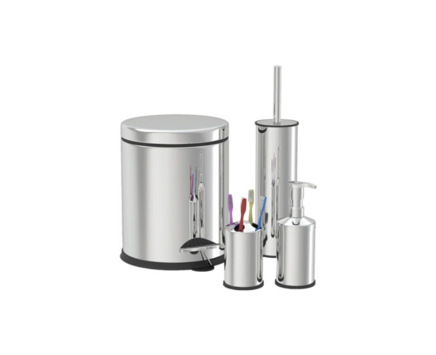 <p>The Zilan ZLN4605 4 pieces inox bathroom set includes a 3 liter pedal bin, smart toilet brush, liquid soap tray, and toothbrush holder. Made from durable stainless steel, this set combines practicality and style, making it ideal for organizing and enhancing any bathroom space.</p>