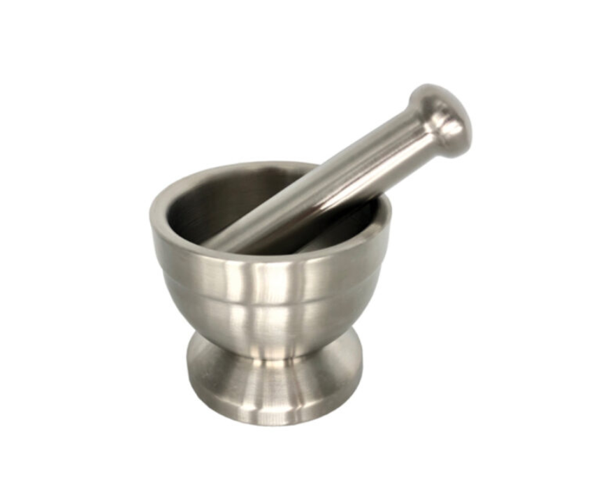 <p>This mortar and pestle set is designed for grinding and crushing herbs, nuts, and spices. Made with durable double stainless steel construction, it features a heavy duty pestle press, non skid base, and a compact, food safe design for efficient and safe use in any kitchen.</p>